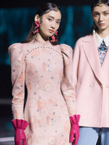 本季CHIU?SHUI(秋水伊人)設(shè)計(jì)師們?cè)谏衩啬葹跛弓h(huán)的啟發(fā)下,探索極簡(jiǎn)主義與極繁主義并存、復(fù)古與未來互融的復(fù)雜美學(xué)。